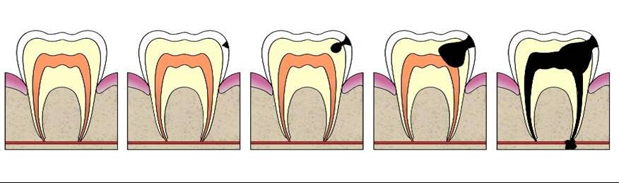 Si no es tracta després de la destrucció de l'esmalt ataca a la dentina, fins a arribar a la polpa produint la seva inflamació (provocant dolor) i fins i tot la seva necrosis (de color negre, es mor la polpa).